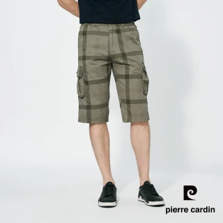 【pierre cardin 皮爾卡登】休閒服飾 男款 側鬆緊印格平口休閒七分褲-橄綠色(5257965-45)