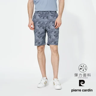 【pierre cardin 皮爾卡登】休閒服飾 男款 彈力印花平口休閒短褲-藍色(5257964-37)