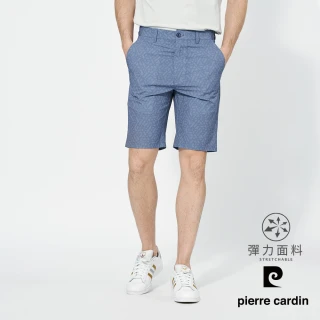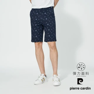 【pierre cardin 皮爾卡登】休閒服飾 男款 彈力印花平口休閒短褲-藍色(5257962-39)