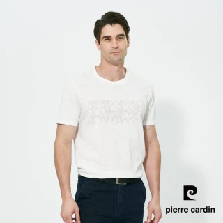 【pierre cardin 皮爾卡登】休閒服飾 男款 印花LOGO圓領短袖上衣-白色(5257281-90)