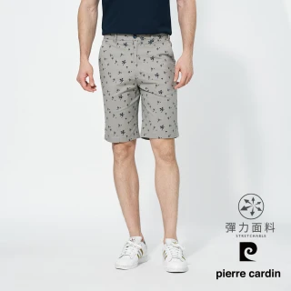 【pierre cardin 皮爾卡登】休閒服飾 男款 彈力印花平口休閒短褲-卡其灰色(5257962-82)