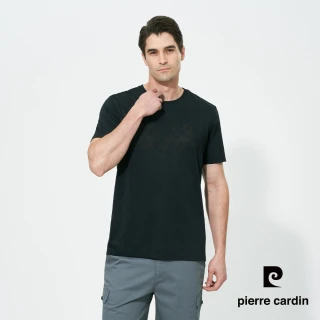 【pierre cardin 皮爾卡登】休閒服飾 男款 印花LOGO圓領短袖上衣-黑色(5257281-99)