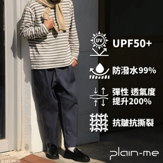 【plain-me】男女款 防潑水CITY BOY彈性舒適百搭神褲 PLN3573(黑 深灰 卡其 男女長褲 寬褲 褲子 休閒褲)