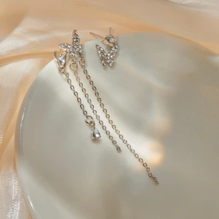 【OB 嚴選】不對稱蝴蝶造型鋯石925銀針耳環 《XA316》