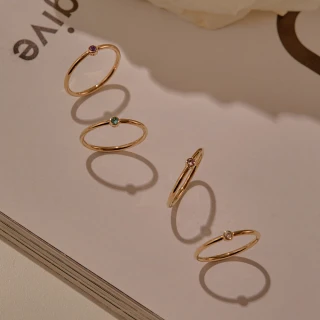 【OB 嚴選】迷你彩色鋯石細圈鈦鋼戒指 《XC0004》