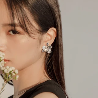 【OB 嚴選】水晶蝴蝶結多戴法925銀針耳環 《XA408》