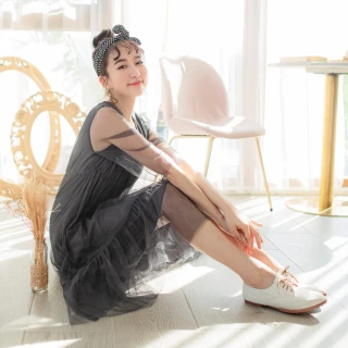 【OB 嚴選】婚禮穿搭法式透膚網紗拼接腰鬆緊寬袖洋裝 《DA7530》