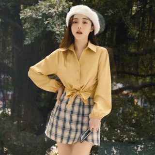 【OB 嚴選】時髦短版綁帶雪紡翻領襯衫上衣 《AB17916》