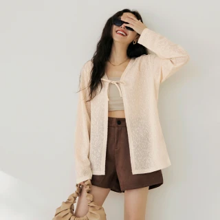 【OB 嚴選】立體紋理蝴蝶結綁帶長袖罩衫外套 《EA3688》