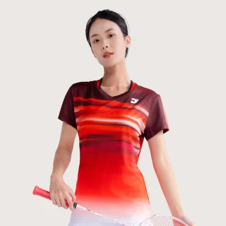 【JNICE 久奈司】女版簡約橫紋 排汗衫 運動上衣 運動服 羽球服 大賽服-紅漸層(JT-054W-RD)