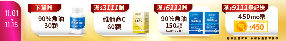 【御熹堂】黃金頂級 90%高濃度專利魚油5入組(一入120顆、啟動身體代謝、歐美藥典高規格把關的第一選擇) $3,911 【御熹堂】黃金頂級 90%高濃度專利魚油5入組(一入120顆、啟動身體代謝、歐美藥典高規格把關的第一選擇) 【御熹堂】黃金頂級 90%高濃度專利魚油5入組(一入120顆、啟動身體代謝、歐美藥典高規格把關的第一選擇)