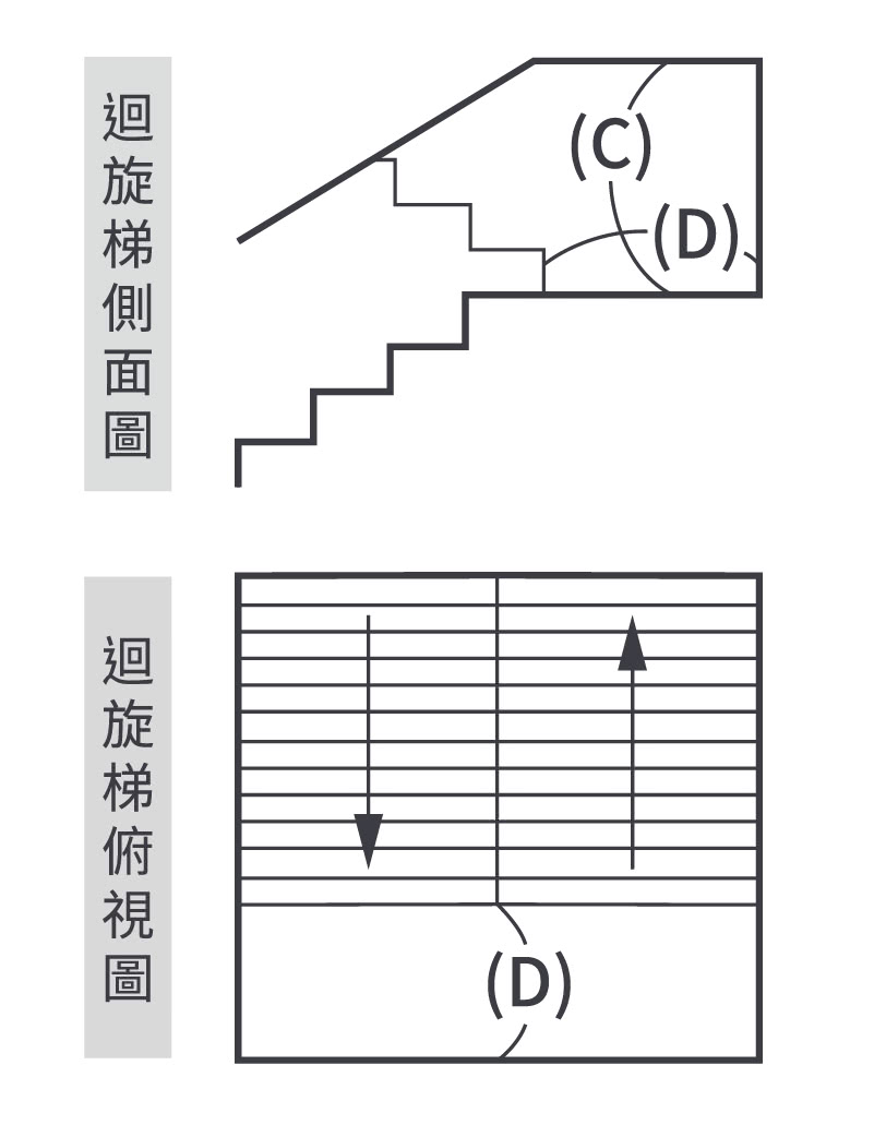 地面到天花板的高度(C) 需要的樓梯深度(D)