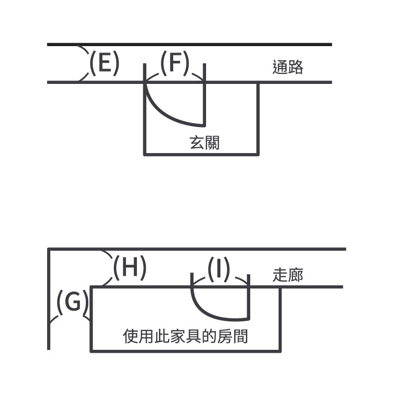 ③ 走廊的寬(H)和房間門的寬(I)的合計