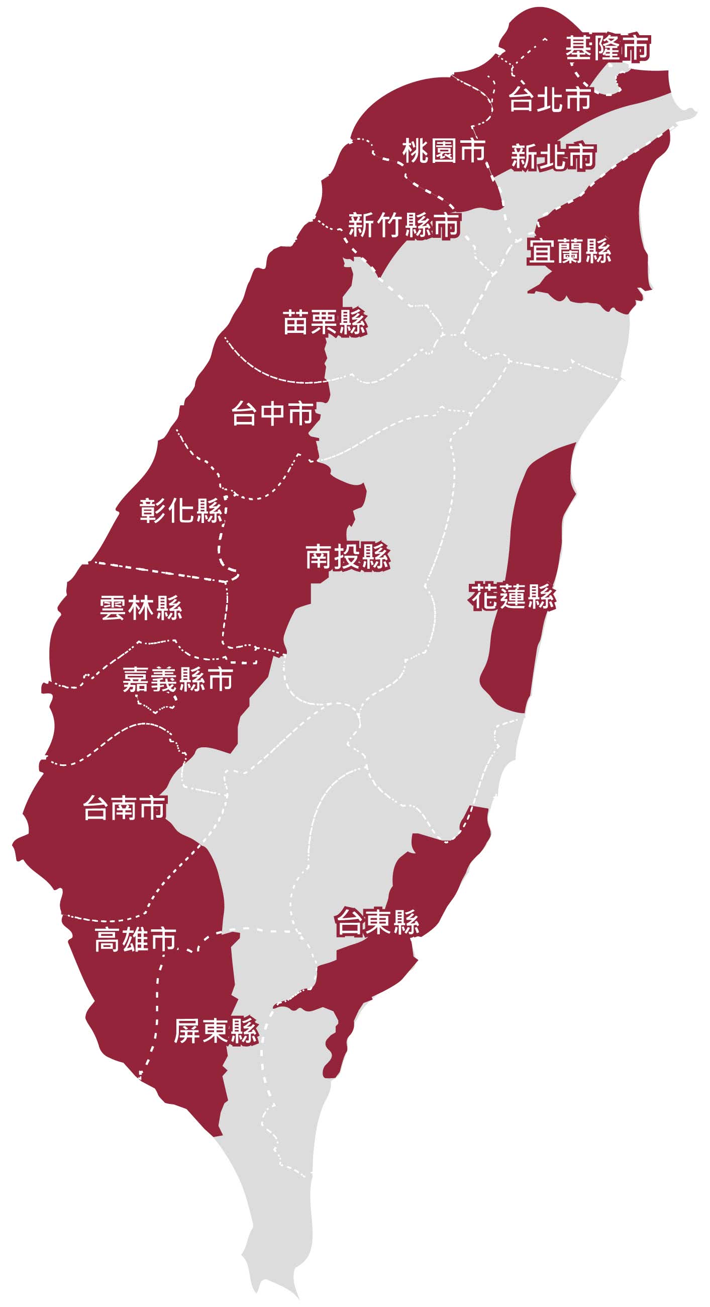 • 台東縣(長濱鄉、大武鄉、海端鄉、延平鄉、 金峰鄉、達仁鄉)