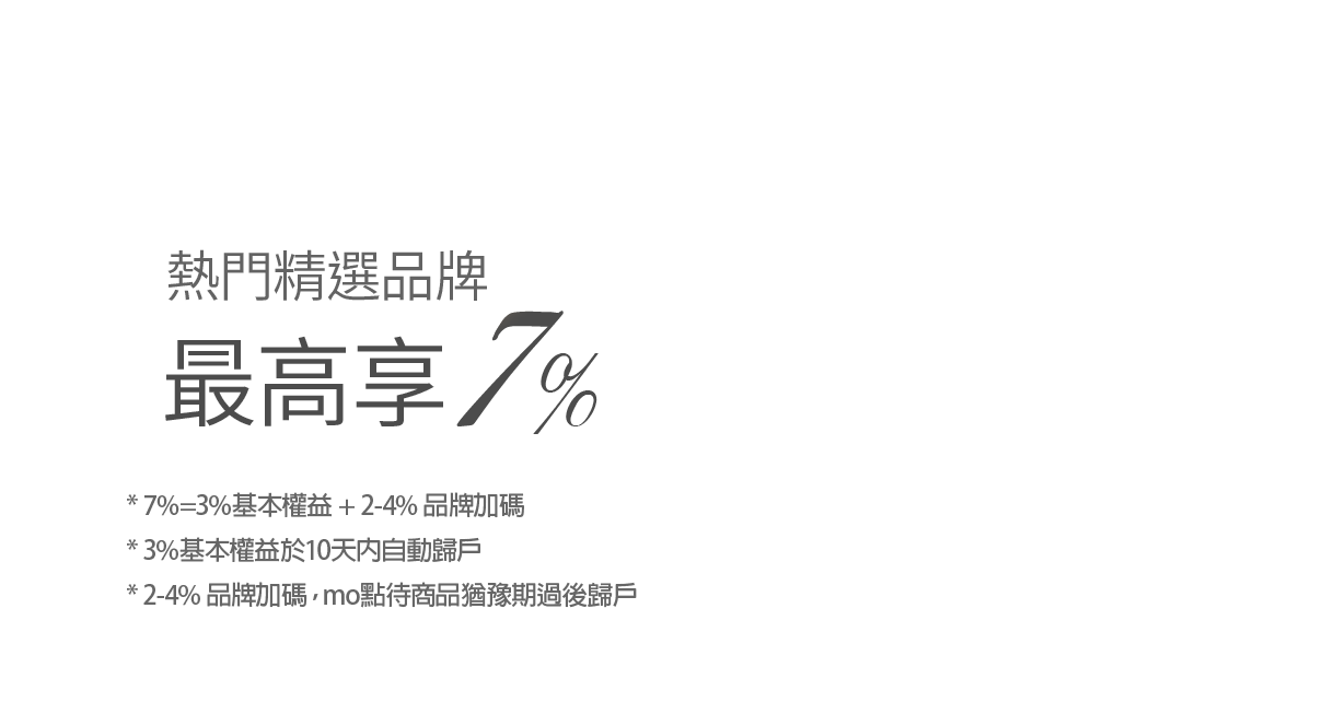 指定品牌加碼回饋,待商品猶豫期過後歸戶至正卡人的mo點帳戶,實際時間以mo點入帳推播通知為準。