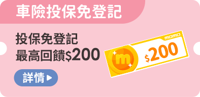 momo會員專屬優惠! 在活動間內投保車險,汽車險最高回饋200mo幣。