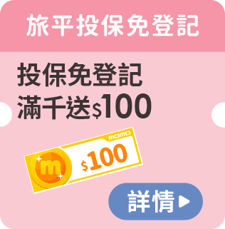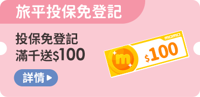 momo會員專屬優惠! 在活動期間內,於momo富立綜合保代網路投保旅平險,滿千加碼回饋$100幣,單筆訂單最高回饋$100mo幣。
