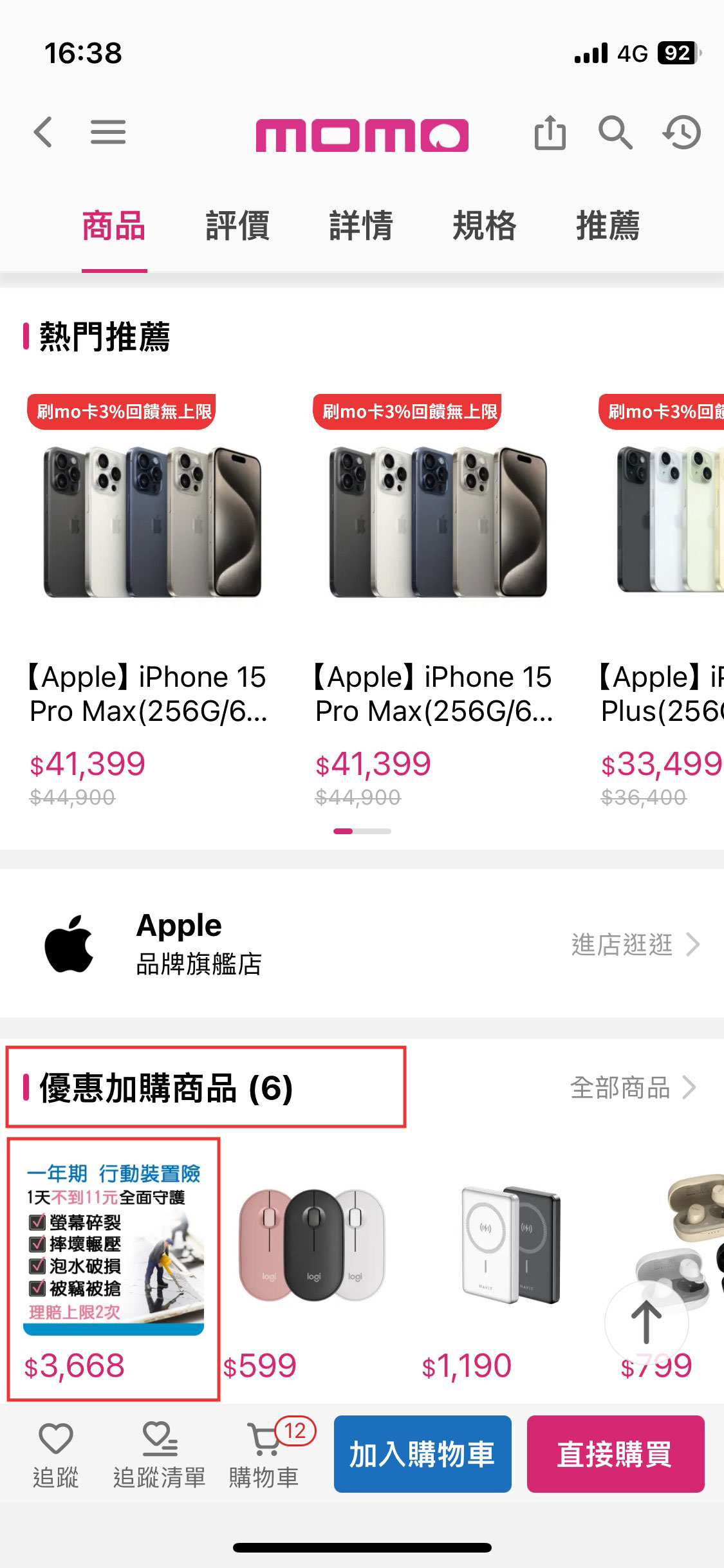 加購行動裝置險,最高回饋300mo幣