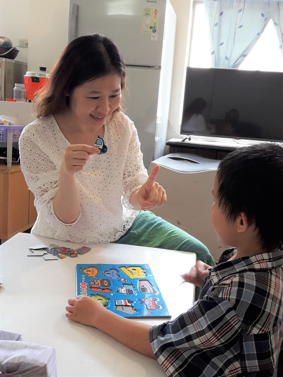 阿儒是個很需要陪伴的大孩子,只要老師注意其他孩子,就會聽到他開始拍打自己、或是拖拉桌子製造聲響,干擾活動的進行。而且他的情緒變化快,本來還有說有笑的,忽然就大吼一聲,將桌上食物撒落一地,吸引老師的注意。為了改善阿儒的行為問題,第一恆愛發展中心的老師針對各方面給予策略,讓他知道這些行為會有哪些後果,也練習說出自己的需求和培養等待的習慣,此外也安排休閒活動豐富他的日常生活,現在阿儒的社交能力進步許多,情緒也穩定了,能每天開心參與中心的活動囉!