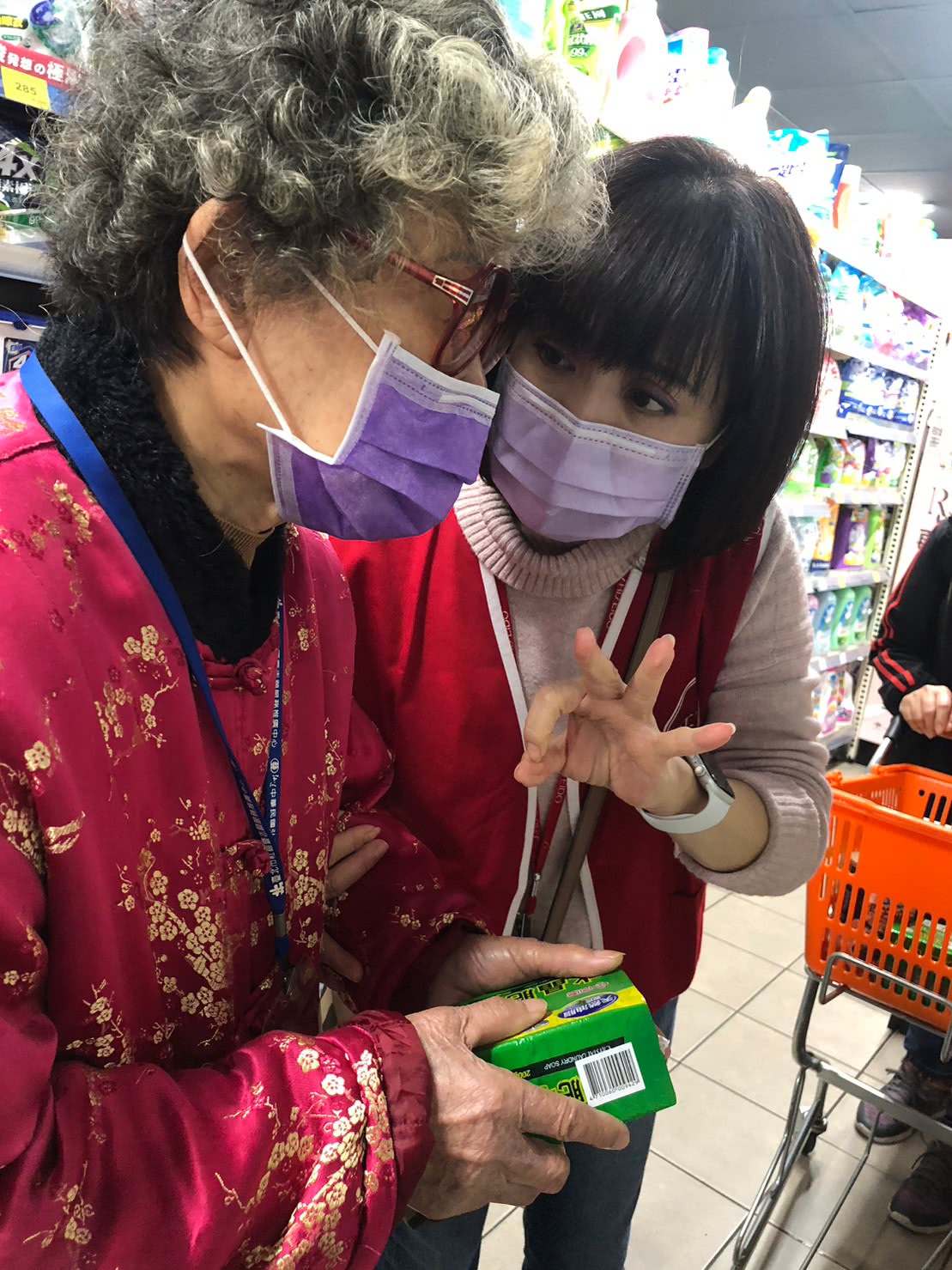 這次辦年貨,奶奶開心說難得出門,快過年了,要穿喜氣一些,有志工陪,終於可以放心買日用品,不用害怕找不到或是買錯,雖然看不見大家,但是很謝謝大家這麼多照顧。