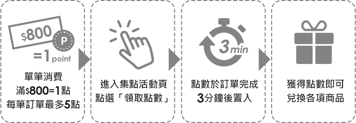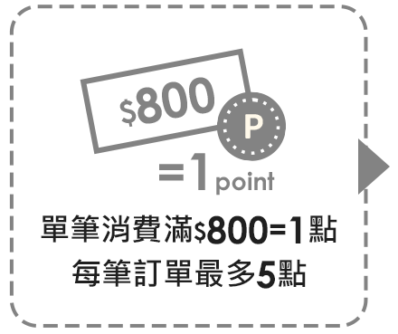 ■ 活動方式:當日每筆消費滿$800元可領1點,每筆消費最高領5點。