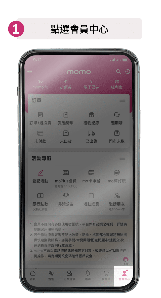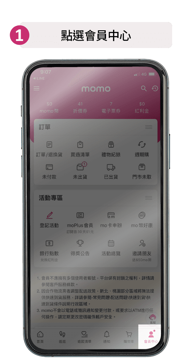 活動期間至momo購物網消費達到登記門檻資格後,需至「會員中心/登記活動」,完成登記才算成功參加活動。