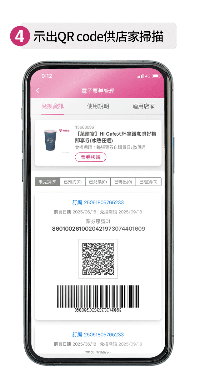 - 本商品採電子票券的方式兌換,可使用列印或於手機出示電子票券提供店家進行核銷。