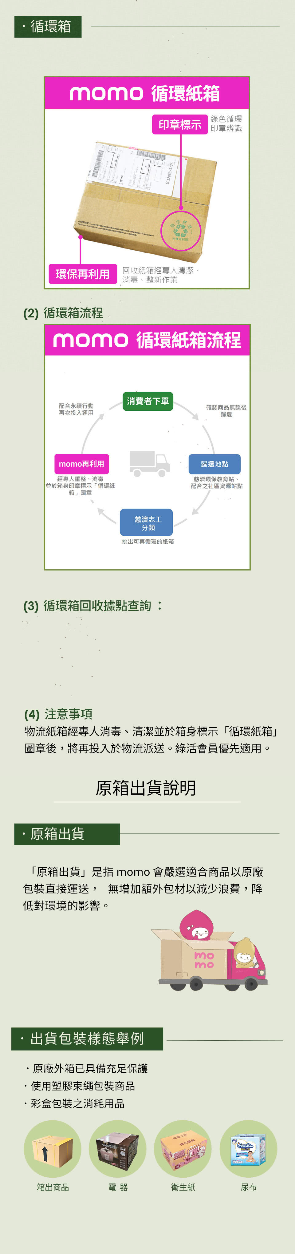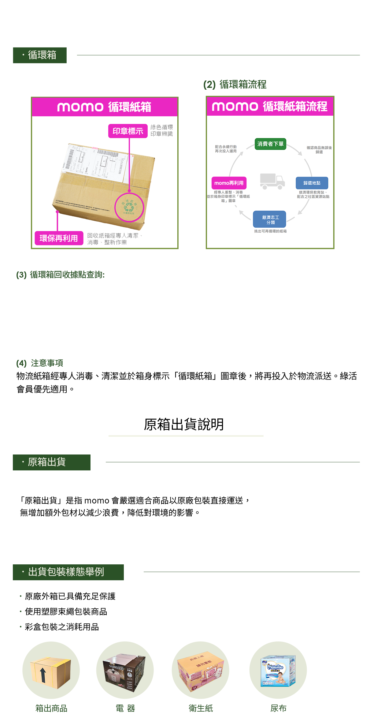 循環包材皆經專人挑選過,專人會挑出適合、可再循環的紙箱,包材中也會以氣泡材墊等緩衝包材保護商品,不會影響商品本身完整性