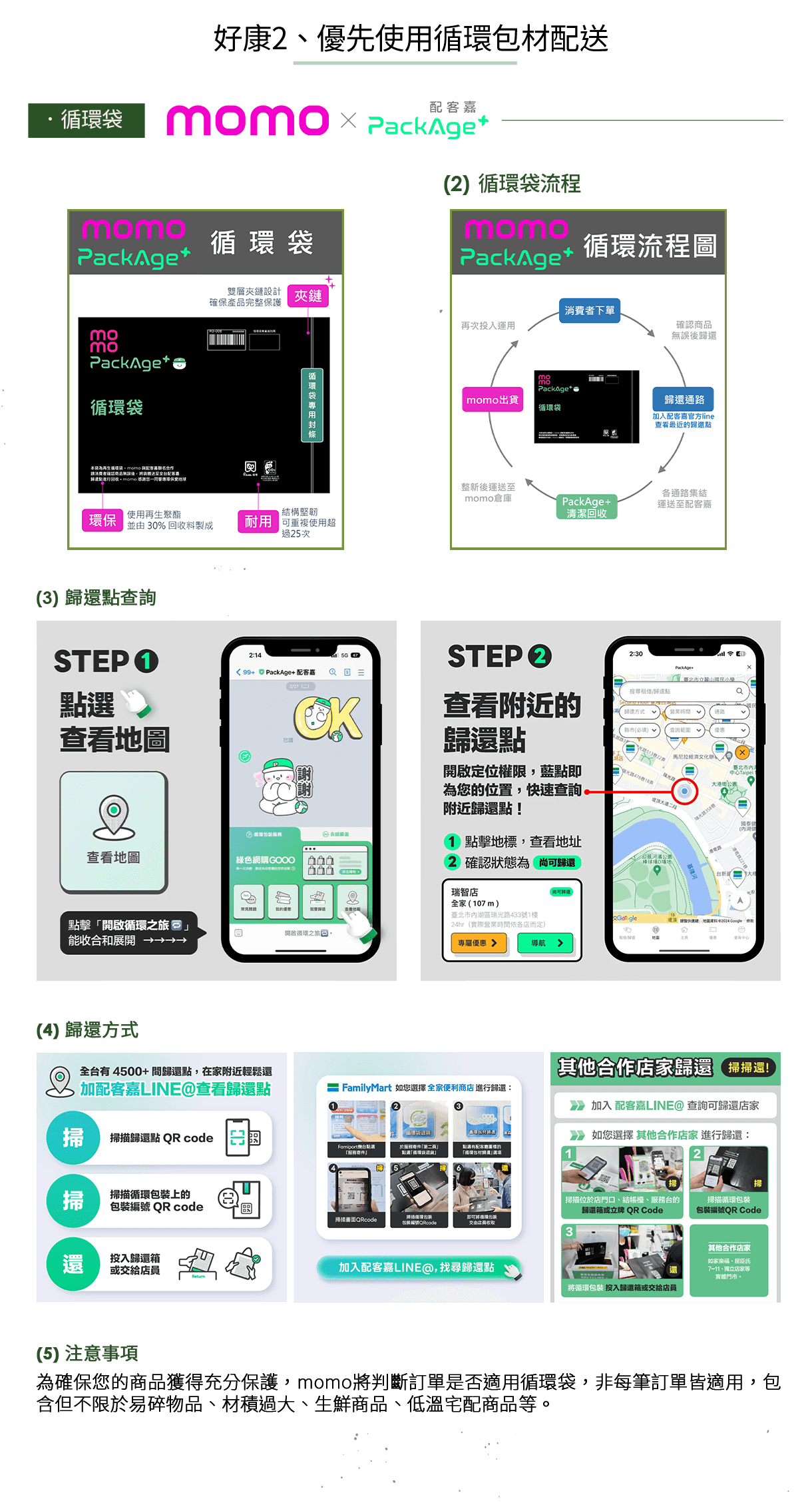 循環袋目前適用郵局、i郵箱、美廉社、台灣大哥大門市、7-ELEVEN,全台超過萬家門市;