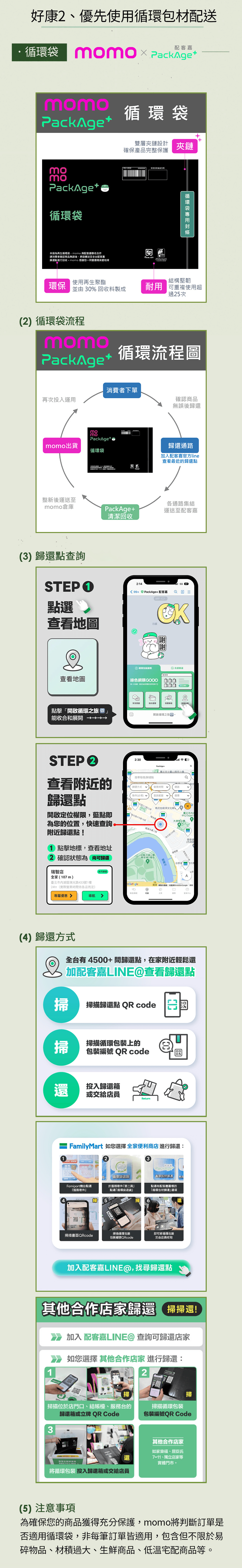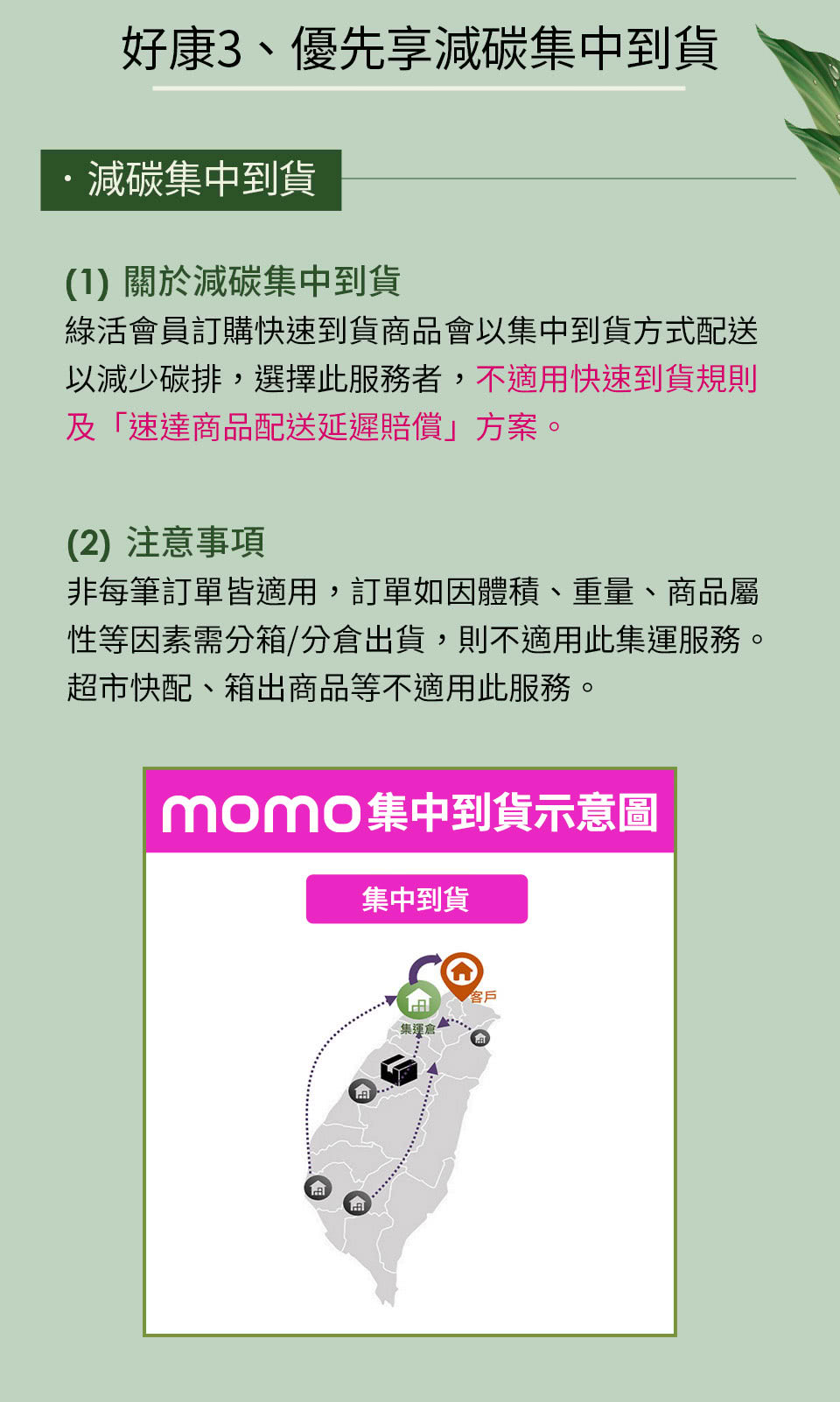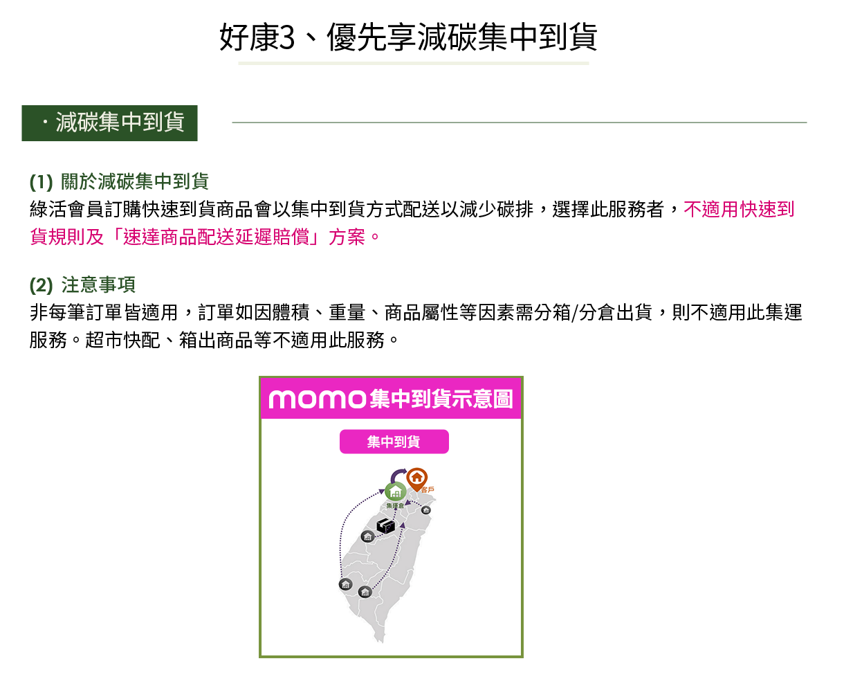 例如:您可以只享有「部分商品集中到貨」服務,不享有「使用循環包材」及「收到綠色活動訊息」服務。