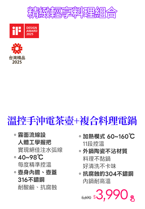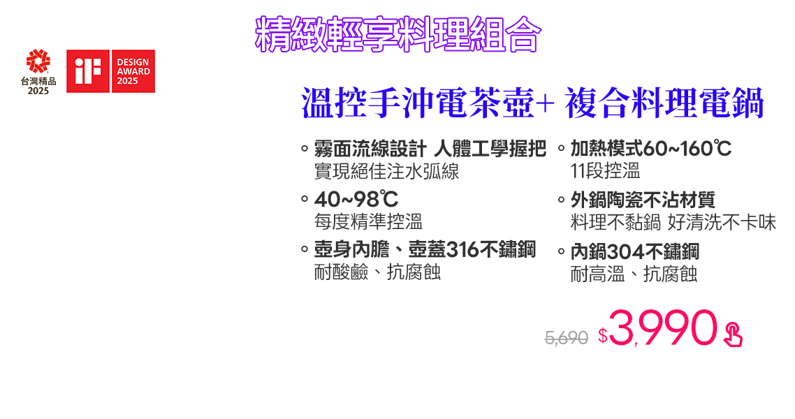 優惠商品數量有限,售完為止。本廣告活動頁商品規格、顏色、價位、贈品如與購物車不符,以購物車標示為準