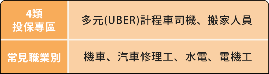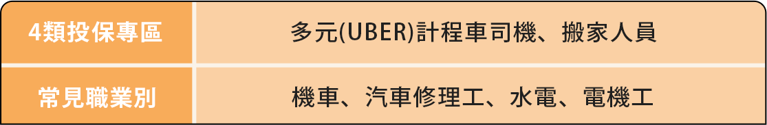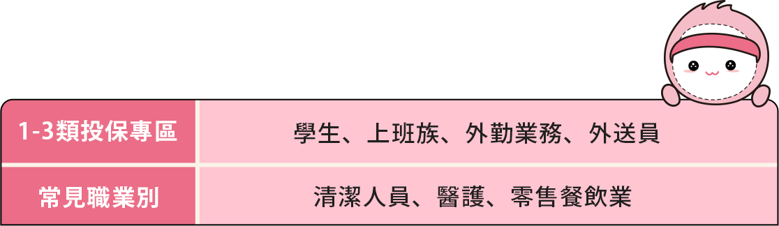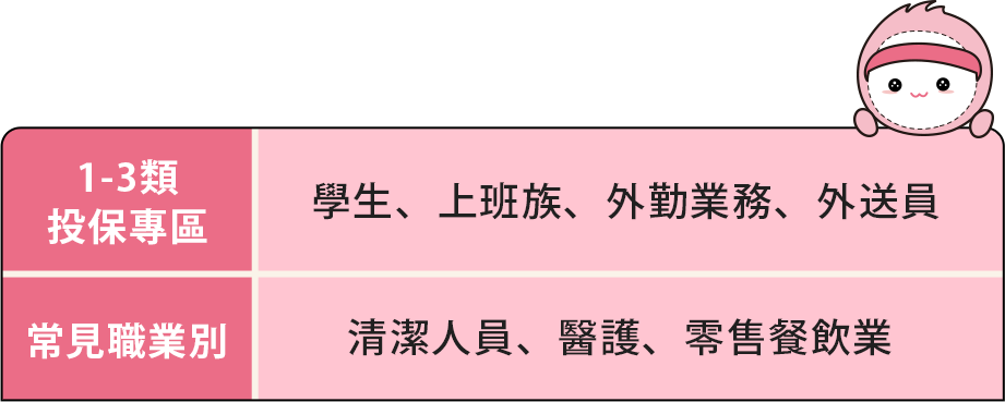 線上投保費率僅適用於第一~四類職業類別,第一~三類為同一費率,第四類則為單一種費率,如您對自己的職業等級表有所疑問