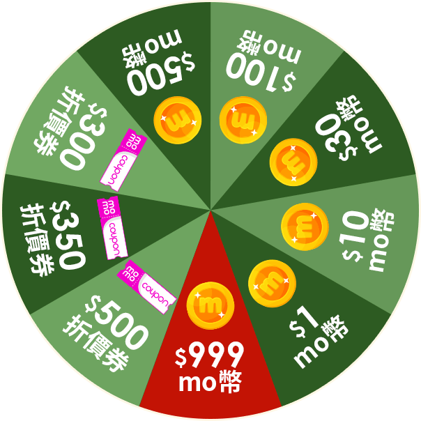 - 週一轉盤重計遊玩機會,每次抽完當下必獲得獎品,完成5輪額外獲得mo幣獎勵。