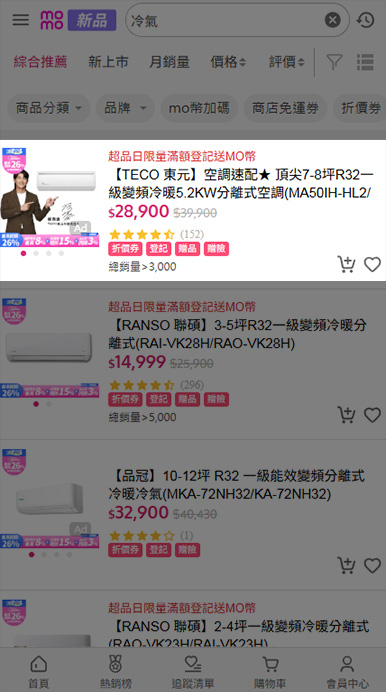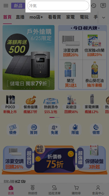 - momo購物網首頁搜尋「商品名稱」或「商品品號」