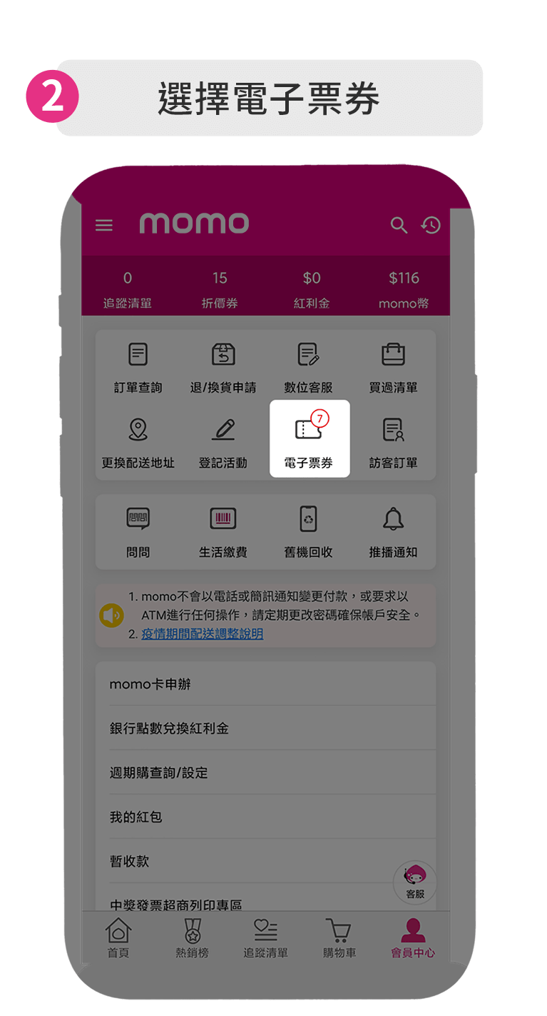 - 只要您在期間未使用過此票號,即可至momo會員中心→我的帳戶→電子票券管理→訂單查詢→點選 【補發】,即可立即收到 E-MAIL & 手機簡訊。