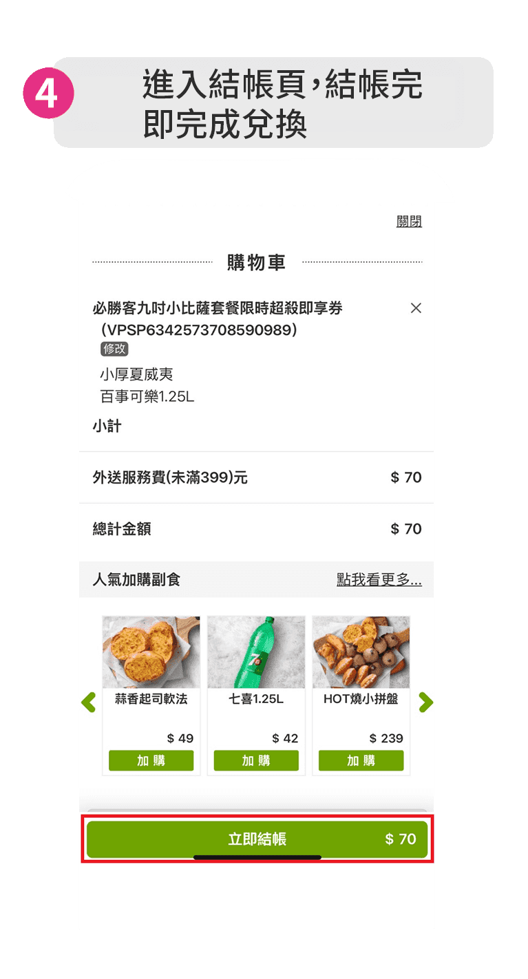 購買【必勝客】或【肯德基】全館商品滿額$499並於活動期間內完成兌換(免登記)。