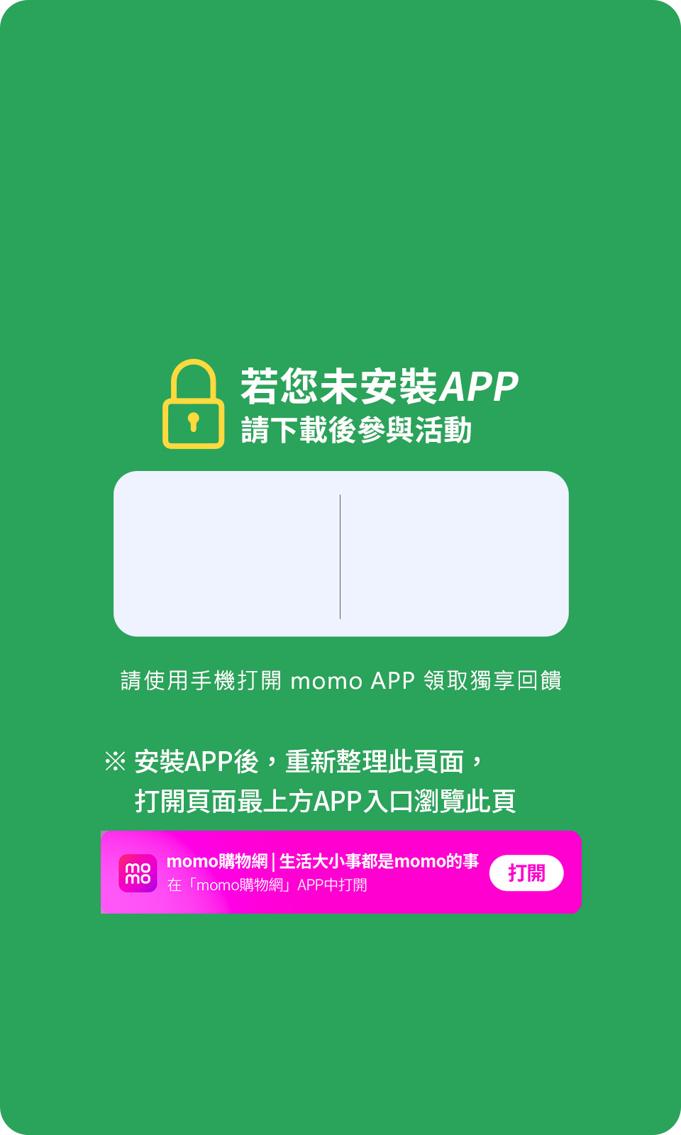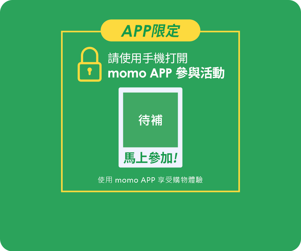 得獎者之指定收件地址僅限台灣本島地區且不可為郵政信箱,本活動之獎項一經momo購物網寄出後,若於運送途中或運送至得獎者指定收件地址後發生遺失、冒領或被竊等喪失占有之情形,概由得獎者自行負責,momo購物網或贊助廠商等不發給任何證明或補償;且得獎者須同意momo購物網及相關之母公司、子公司、關係企業、員工、及代理商對所有因領取或使用獎品之後果概無須負責,包含且不限於獎品本身之後續保固責任。
