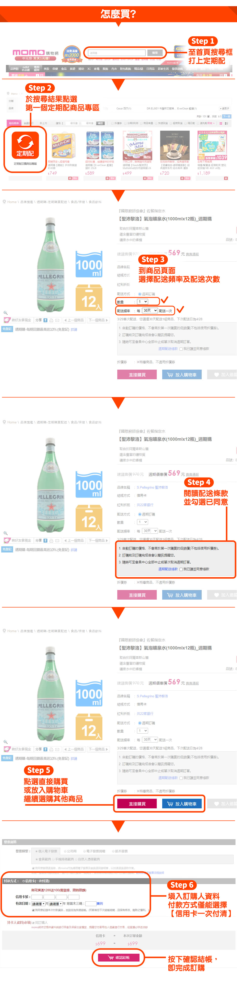 - 付款方式:定期訂購服務限使用信用卡付款(刷卡限1期 ),momo購物網將依您所選擇的條件,自動於每個週期使用您所設定的信用卡訂購商品。