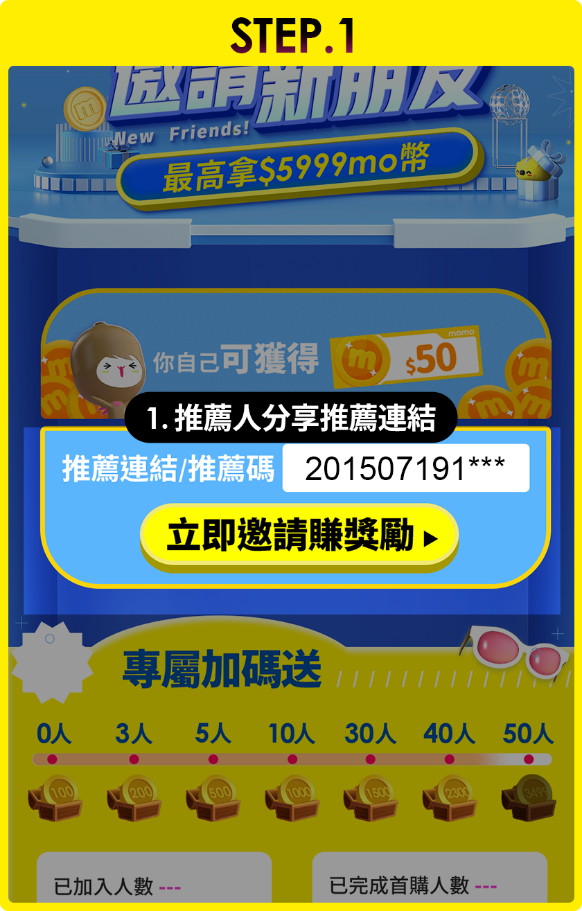 - Step 4.推薦人成功推薦獎勵統一於活動結束次月月底前歸戶。