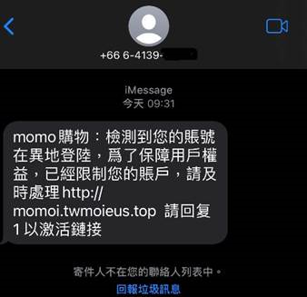 - 電話號碼:收到開頭為「+」號、「+886」此類為可疑電話簡訊。