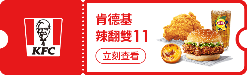 - 歡迎至肯德基官網【優惠券專區】 輸入優惠代碼查詢使用。若網購無法使用建議至門市點餐使用。