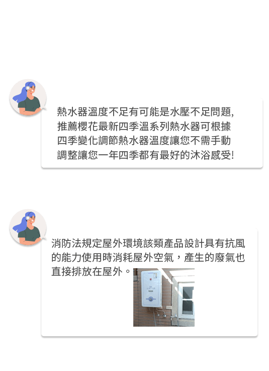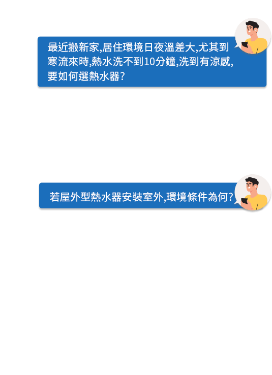 A:瞬熱式免治馬桶:使用時即時加熱,加熱速度較快,恆溫穩定供水。儲熱式免治馬桶:主機備有水箱儲備加熱過的水,並持續加熱保溫,若主機水箱內水量使用完需重新等待水加溫時間
