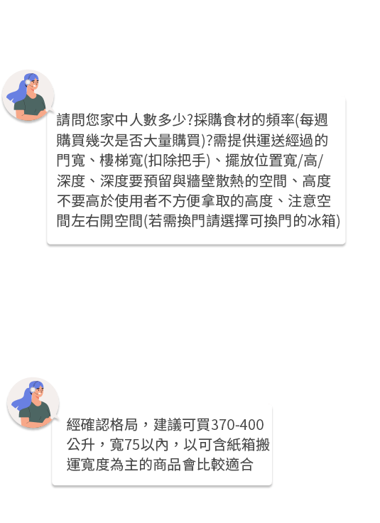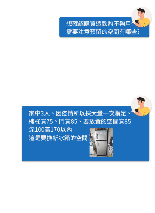 以採購食材的頻率以及料裡、飲食習慣為參考依據。
