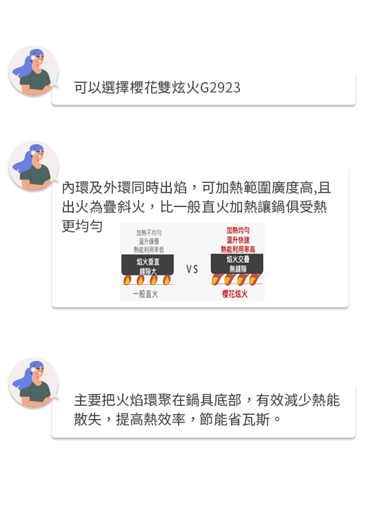 A:主要分為三種.台爐,嵌入爐及檯面爐三大類,其中嵌入爐及檯面爐安娤需搭配廚具