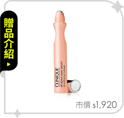 12/5當日累積消費滿$3,680,即可登記送【CLINIQUE 倩碧】全效亮眼按摩精華,限量521名。