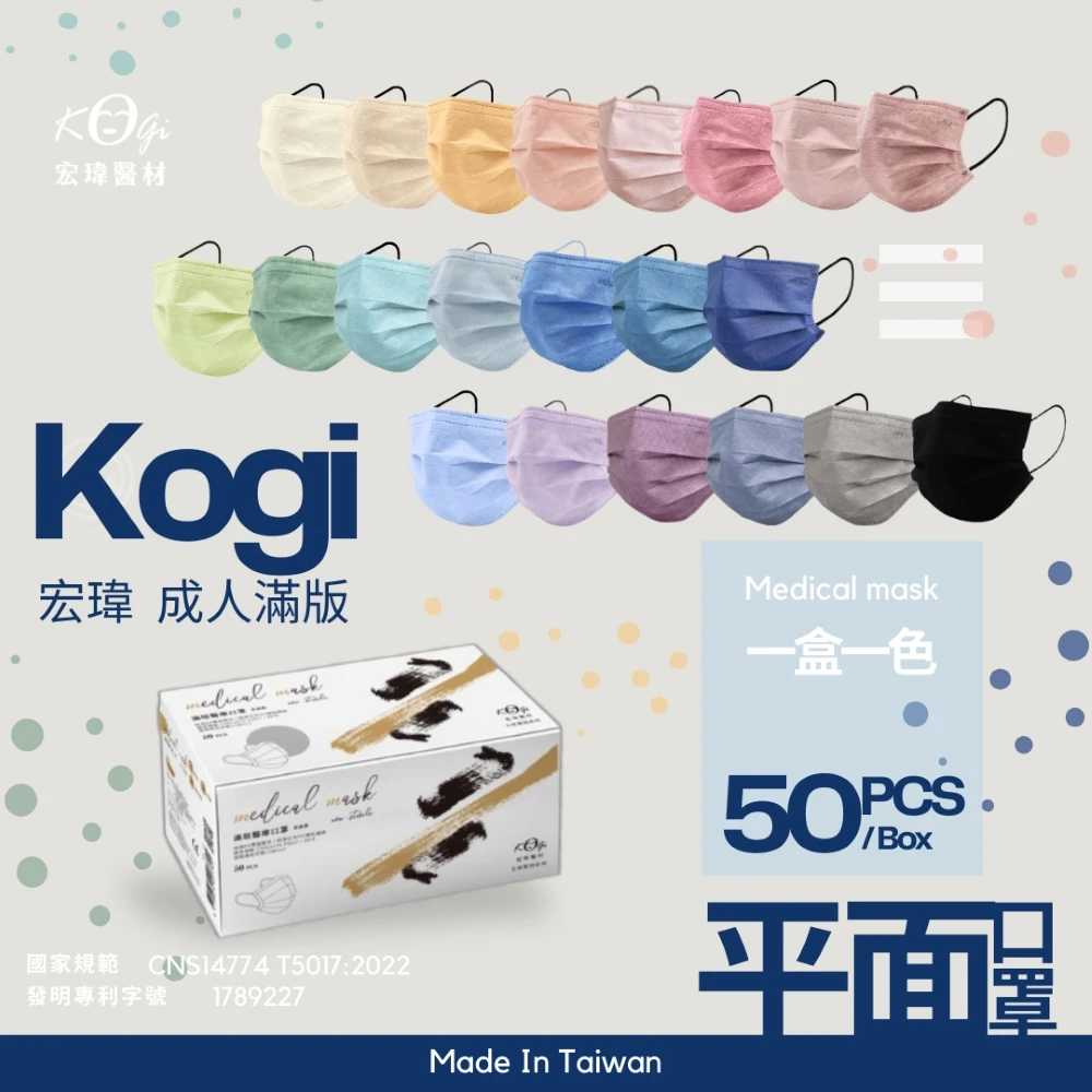 宏瑋 成人平面醫療口罩 滿版系列4盒組|50入/盒(醫療級三層防護|疫情防護必備|台灣製造)
