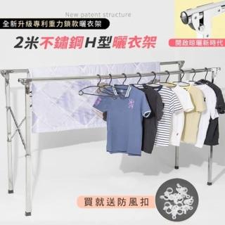 Ashley House 重力鎖新型專利全不鏽鋼H型2米伸縮晾曬衣架(晾衣架 曬衣桿 伸縮晾衣架 掛衣架)