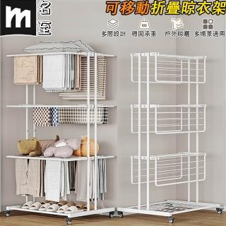 名至 可移動折疊晾衣架 三層 360°靈活萬向輪(衣帽架 掛衣架 曬衣架 吊衣架 預購15天)
