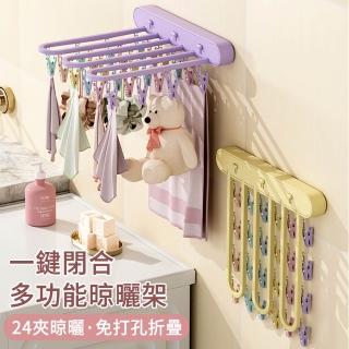 SUNLY 24夾折疊晾衣架 多功能摺疊曬襪架 壁掛多夾衣架 晾曬置物衣架 晾曬夾