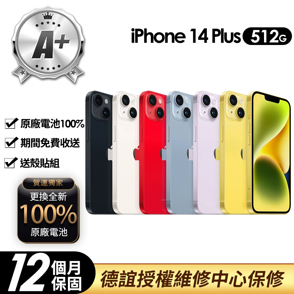 【Apple】A+級福利品 iPhone 14 Plus 512G 6.7吋(100%電池+送殼貼)【Apple】A+級福利品 iPhone 14 Plus 512G 6.7吋(100%電池+送殼貼)【Apple】A+級福利品 iPhone 14 Plus 512G 6.7吋(100%電池+送殼貼)